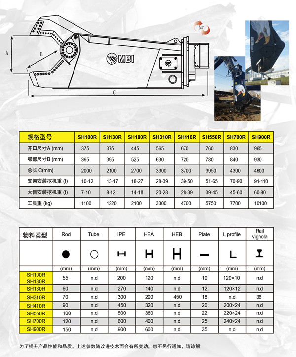 MBI鷹嘴剪SH系列產(chǎn)品,廢料鋼拆除專家,用于剪切廢鋼和工業(yè)拆除,這是最新的廢鋼剪切產(chǎn)品,在剪切力和強(qiáng)度方面是最強(qiáng)的,我們的產(chǎn)品表現(xiàn)一流,能滿足最挑剔的客戶需求; 水山破碎錘
